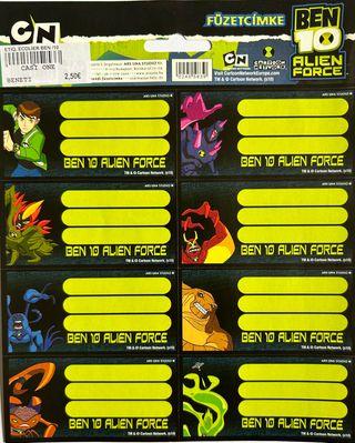 8 Etiquettes scolaires « BEN 10 ALIEN FORCE »