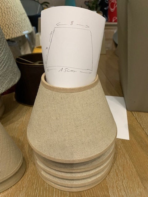 Abat jour beige caramel de diamètre haut70mm de diamètre bas 152mm, de hauteur 115mm attaches cuivrée