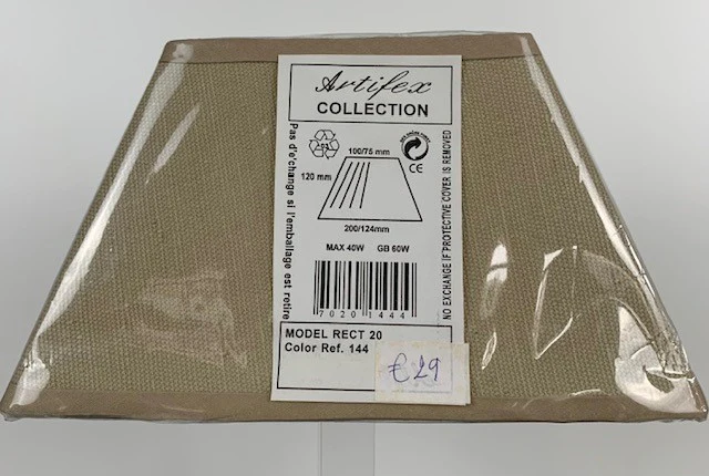 Abat jour modèle rectangulaire couleur beige moutarde de diamètre haut 100/75mm, de diamètre bas 200/124mm, de hauteur 120mm couleur 144 rect 20