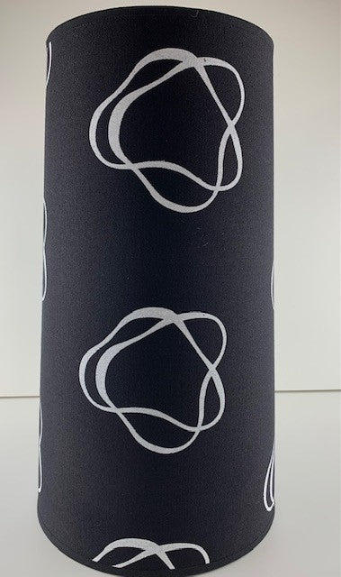 Abat jour tube cylindrique noir avec dessins blancs de diamètre haut 180mmet de diamètre bas 220mm, de hauteur400mm