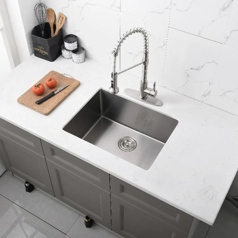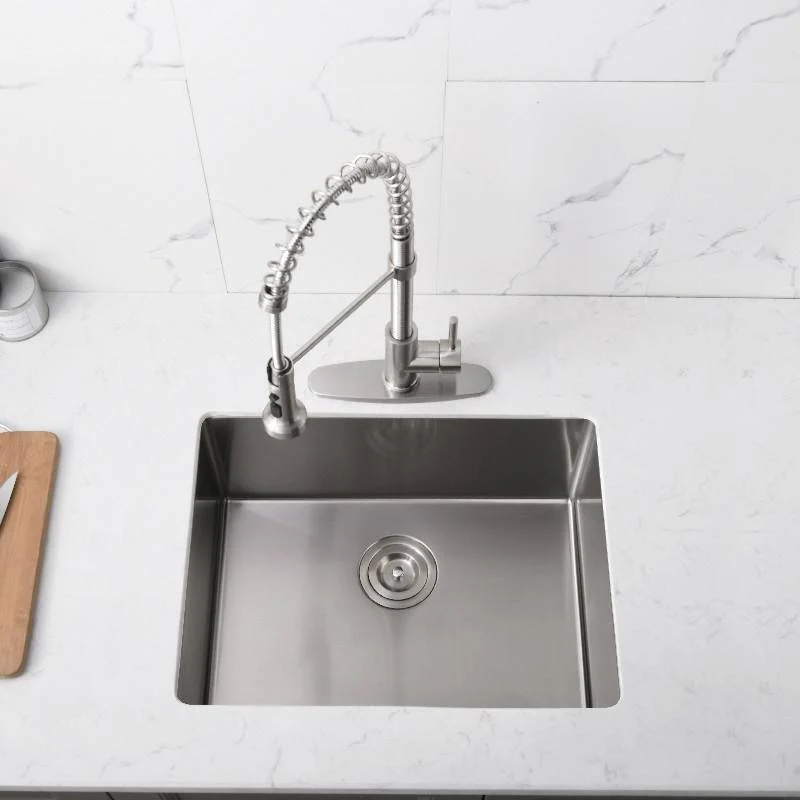 Cet évier est fabriqué en acier inoxydable de haute qualité, un matériau reconnu pour sa robustesse, sa résistance à la corrosion et sa facilité d’entretien. Il assure une durabilité optimale pour votre cuisine.