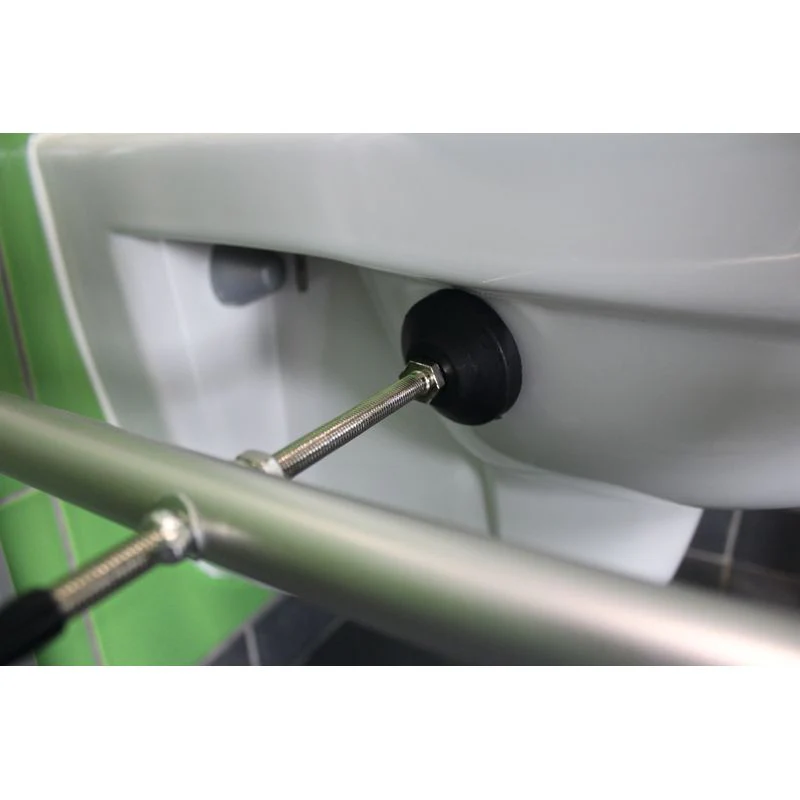 Structure en aluminium anti-corrosion et poignées en matériau plastique. 2 pattes latérales se fixent à la cuvette pour garantir une tenue ferme.