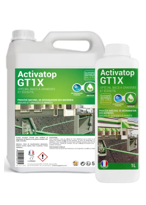 Grâce à un procédé naturel de dégradation des matières, Activatop GT 1X élimine les graisses et les odeurs.