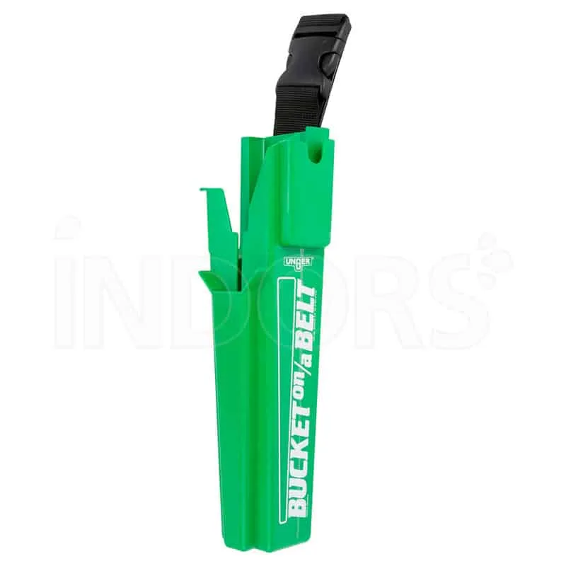 Clipsez le Carquois ceinture UNGER sur la ceinture de travail, placez le mouilleur côté avant pour l’accès rapide et la raclette séparée pour garder un bord de lame propre. Rincez régulièrement l’intérieur pour évacuer l’eau et les débris.
