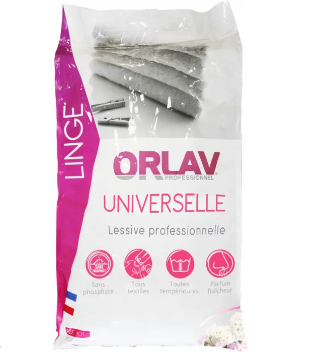 Puissante et économique, la lessive universelle Orlav est pensée pour le lavage en collectivité de tous textiles. Sa forte alcalinité lui confère un haut pouvoir dégraissant et séquestrant, efficace à toutes températures, tout en restant sans phosphate, avec mousse contrôlée pour des cycles stables et réguliers.