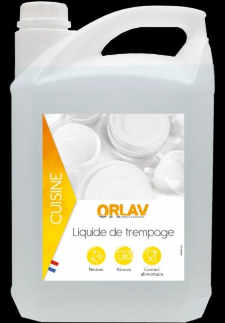 Le liquide de trempage ORLAV 5 L est conçu pour faciliter le nettoyage des ustensiles et matériels avant leur passage en machine. Utilisé en pré-trempage, il aide à décoller les résidus alimentaires secs, les graisses et les salissures incrustées, afin de réduire le temps de brossage et d’améliorer l’efficacité du cycle de lavage. Ce liquide de trempage est particulièrement utile en cuisine professionnelle, collectivités et CHR, lorsque les bacs, grilles, accessoires et éléments de préparation ne peuvent pas être lavés immédiatement.