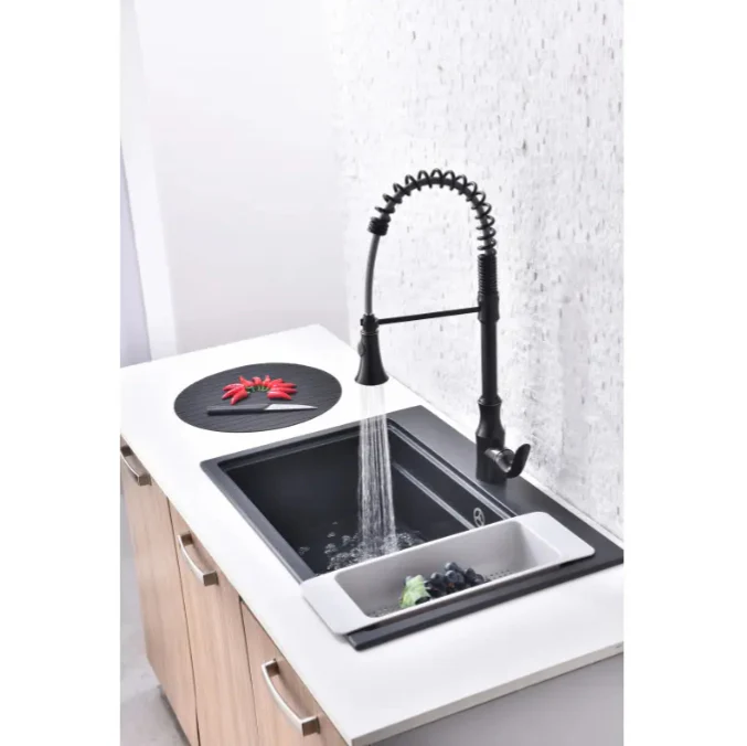 - Douchette Extractible Semi-Professionnelle : Flexibilité accrue pour toutes les tâches, avec un bec orientable et un jet pluie.