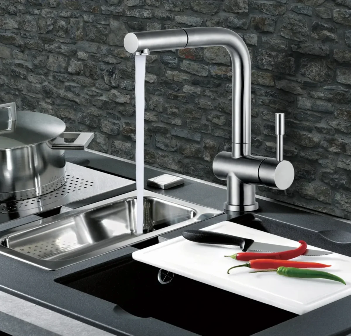 - Usage optimisé : Profitez d’une douchette extractible pour une polyvalence maximale, d’un bec orientable pour un confort accru et d’un aérateur ECO pour une consommation d’eau maîtrisée, simplifiant toutes vos activités culinaires.