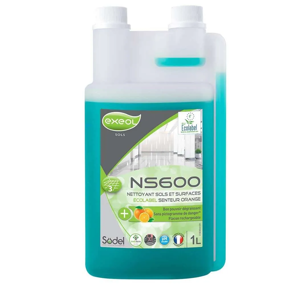 NS 600 – Nettoyant Sols et Surfaces Ecolabel Orange – Flacon 1L rechargeable