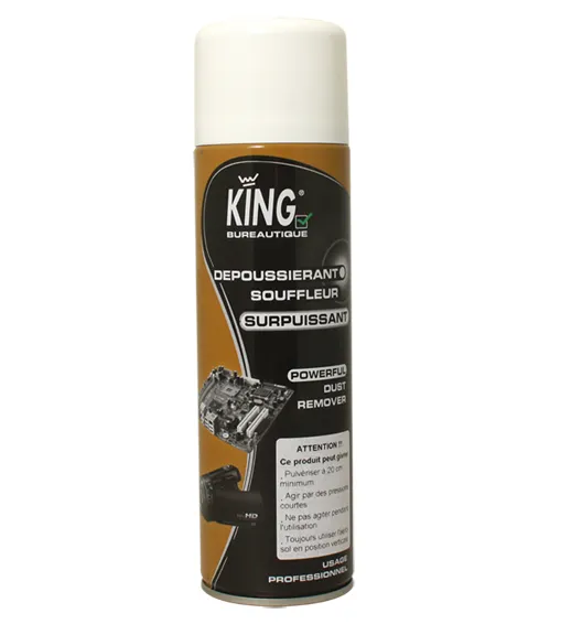 Dépoussiérez sans contact ni abrasion toutes vos surfaces fragiles grâce au souffleur surpuissant KING. Son gaz pur, neutre et sec expulse la poussière et les particules hors des zones sensibles (optiques, électroniques, mécanismes fins) en toute sécurité. Le tube prolongateur gros diamètre assure un jet précis et efficace, même dans les zones très peu accessibles.